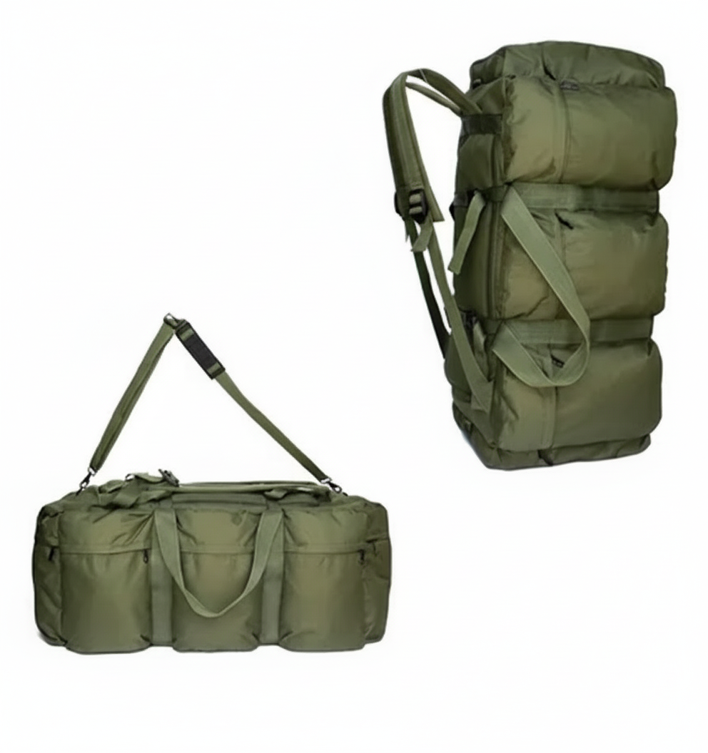 Specificaties: 100L capaciteit | 1.575 kg gewicht | 100% waterdicht Oxford materiaal | Duffel + rugzak functie | Ergonomische pasvorm | Kleur: Tactical Groen | Militaire kwaliteit